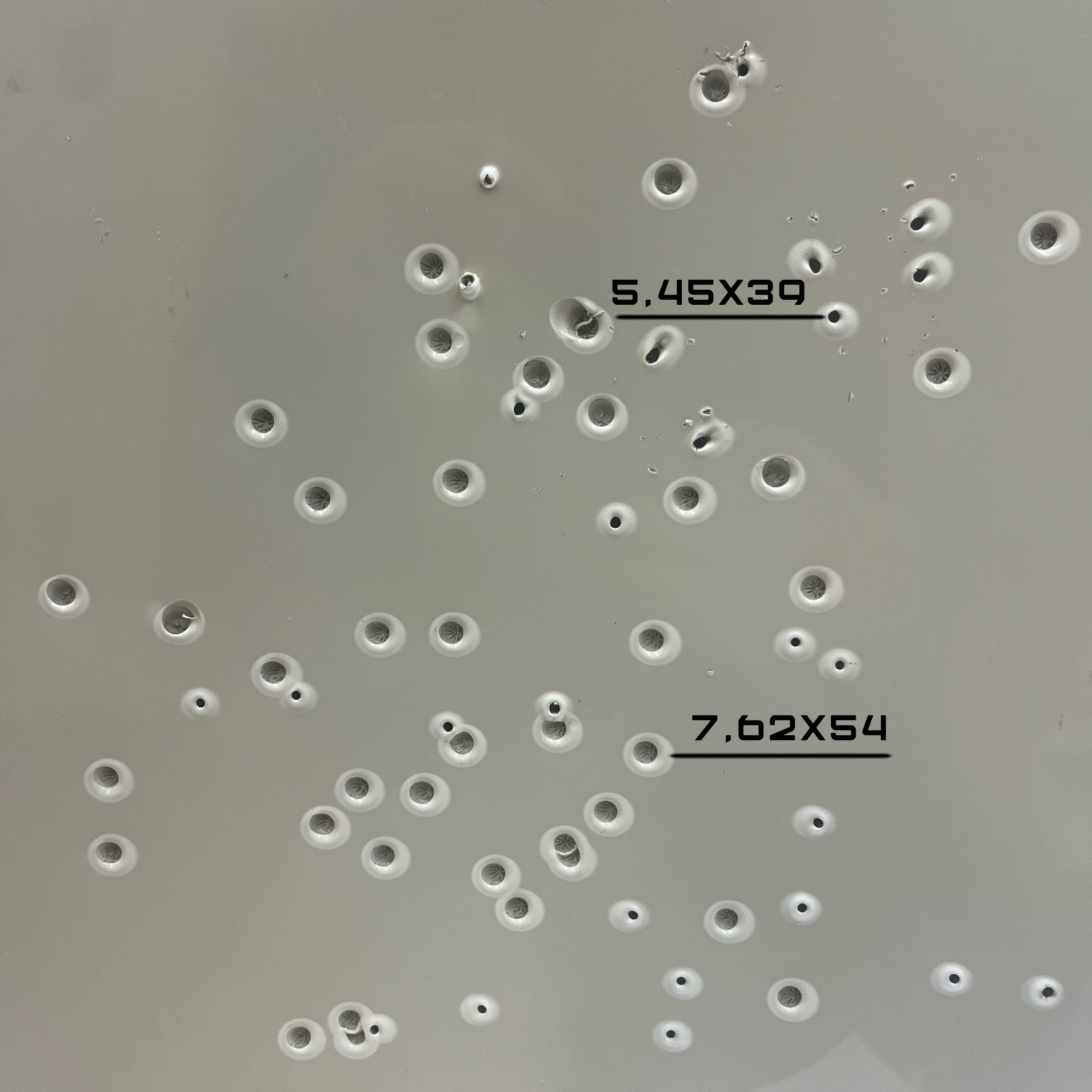 - Рекомендации по боеприпасам: не рекомендуется использовать бронебойные или бронебойно‑зажигательные боеприпасы в связи с высокой вероятностью рикошета и повышенным износом мишени. Также не рекомендуется применять боеприпасы крупного калибра (например, 12,7 мм): после прохождения таких пуль через тело мишени пластик не успевает «затянуться», что приводит к необратимому повреждению мишени и сокращению её ресурса.