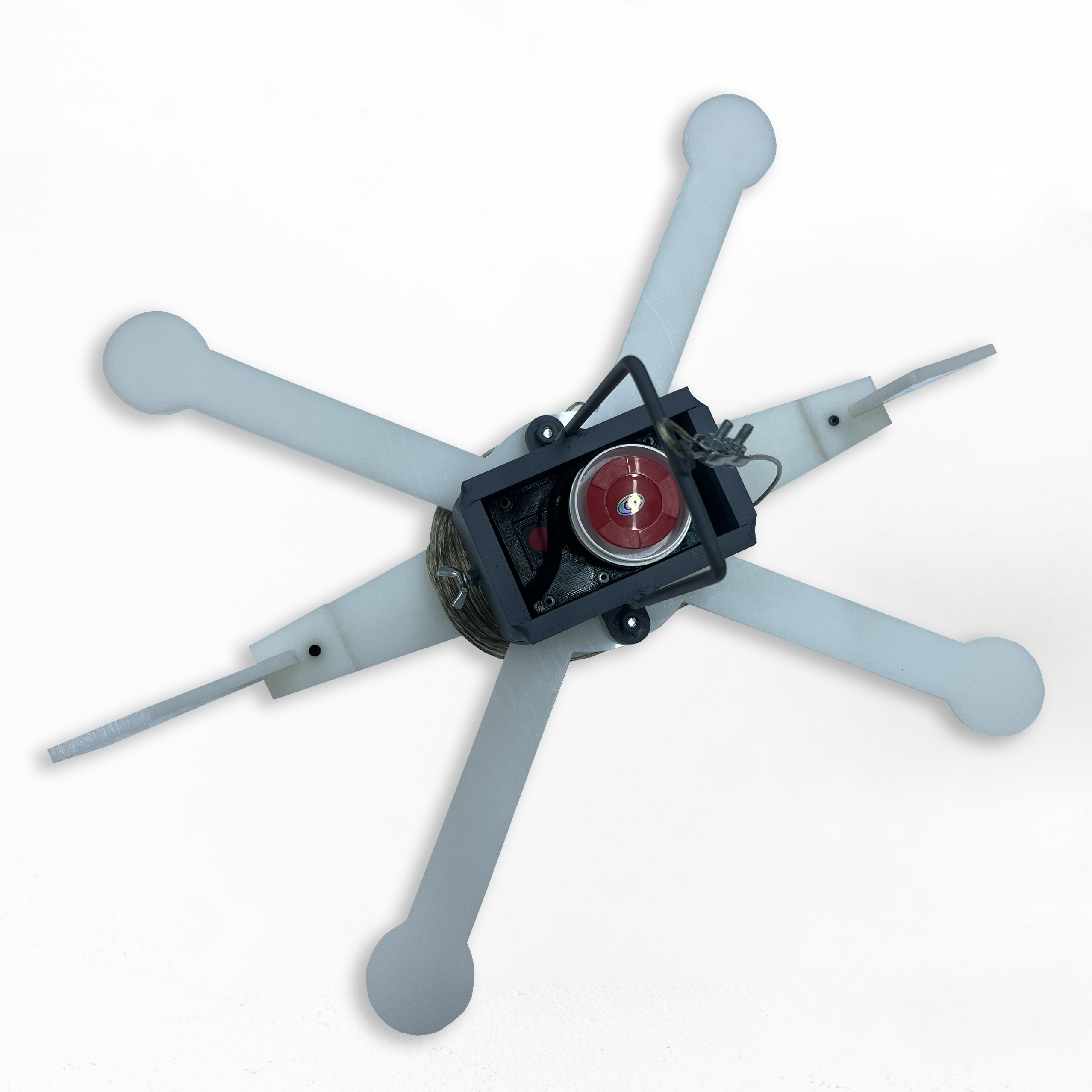 Присоединение троса. Закрепите трос мишени к дрону. Проверьте надёжность соединения.