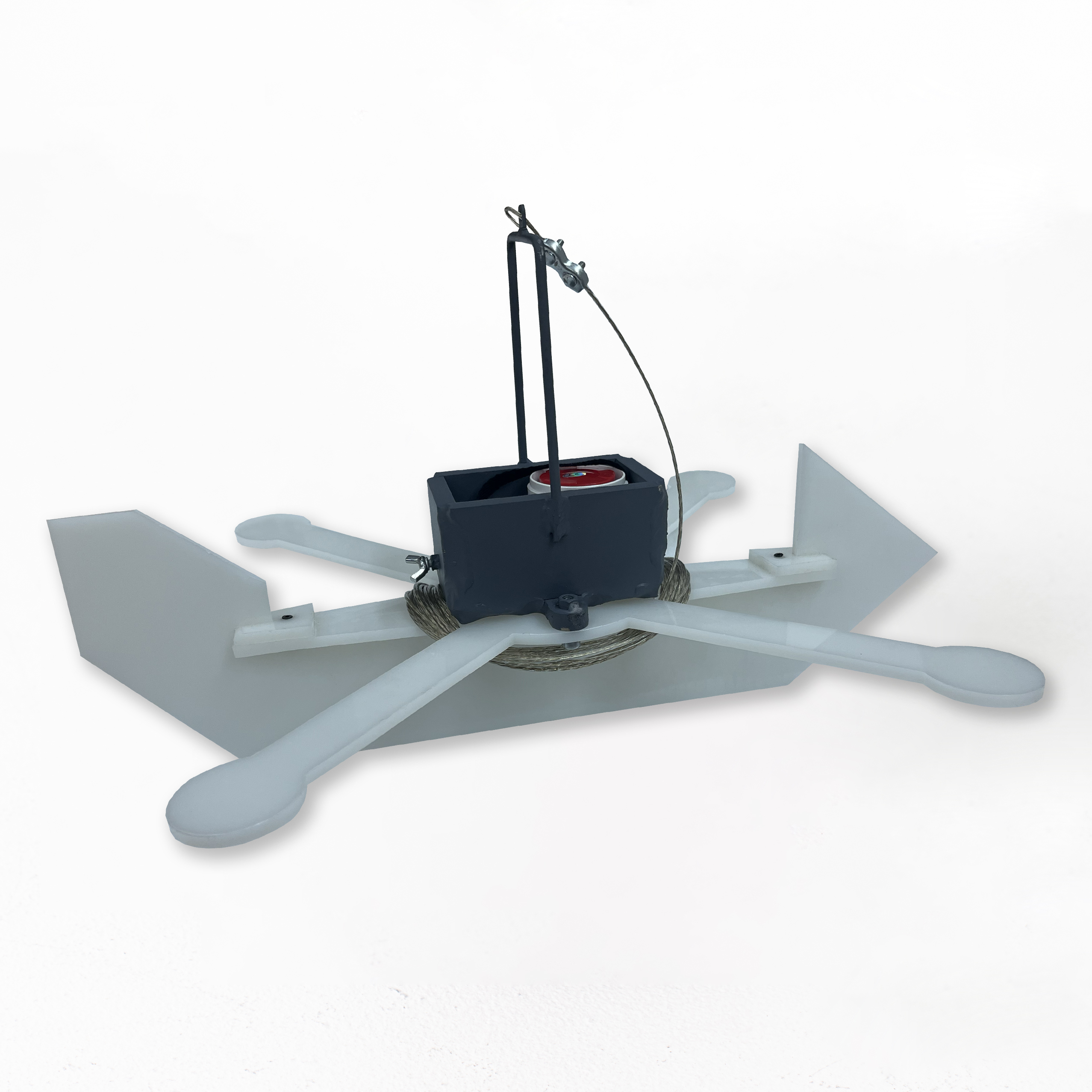 Мишень крепится к дрону с помощью троса длиной не менее 5 м. Это даёт оператору возможность маневрировать дроном и перемещать за собой имитатор цели, моделируя реальные сценарии поражения воздушных объектов.