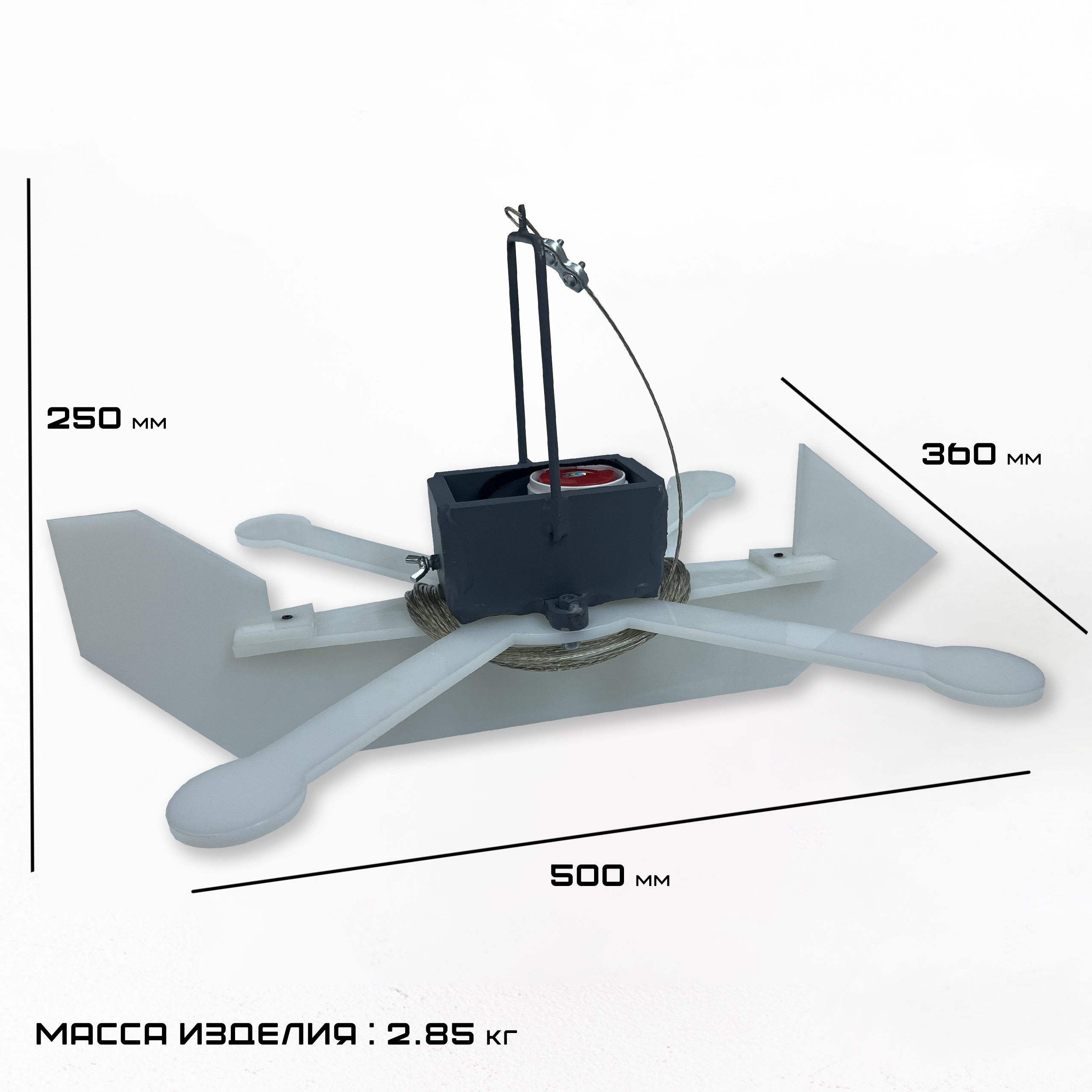 Масса мишени — 2,85 кг. Оптимальный вес обеспечивает устойчивость в полёте и реалистичность имитации БПЛА.