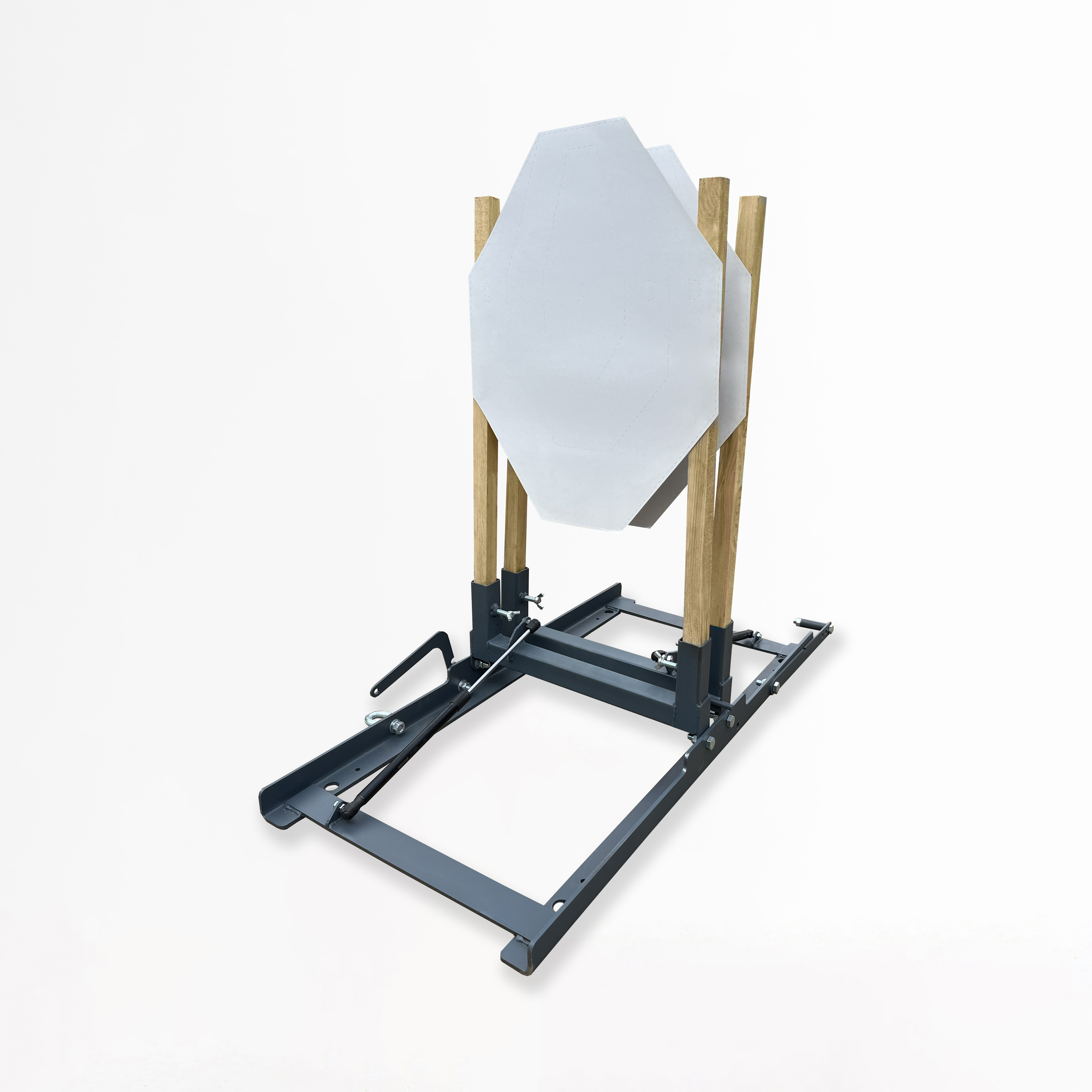 Работа установки Clamshell начинается с того, что две картонные мишени находятся в нижнем положении. При активации установки с помощью Поппера или троса происходит поднимание мишеней. Однако стоит отметить, что передняя мишень поднимается немного быстрее, чем задняя, которая имитирует запретную штрафную мишень, поражение которой недопустимо. Это создает эффект внезапно появляющихся целей, что добавляет элемент неожиданности в тренировочный процесс.